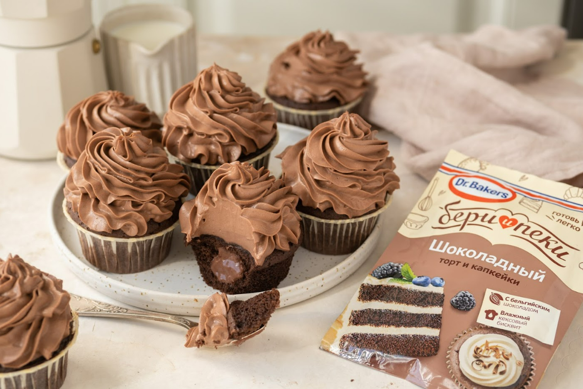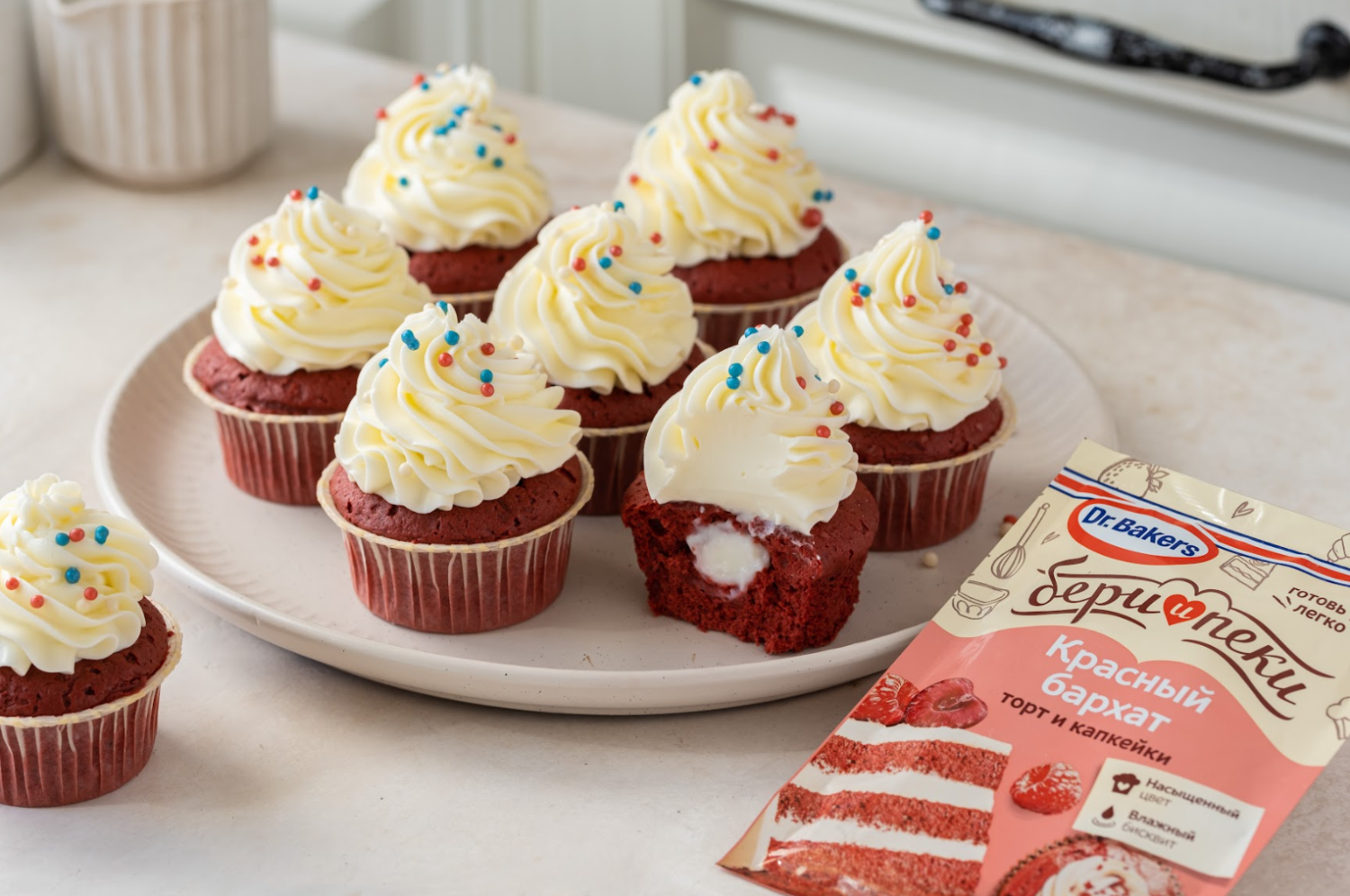 Капкейки «Красный бархат» с масляным и заварным кремом