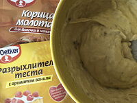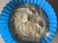 В миске разминаем сливочное масло (заранее его нужно достать из холодильника) с щепоткой соли и 20г сахара.Добавляем взболтанное яйцо, размятый вилкой банан. Перемешиваем
